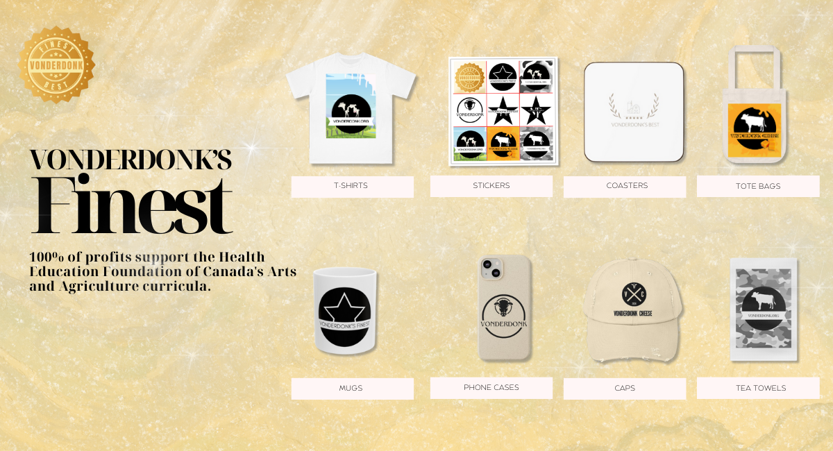 When Dr. Erica Frank saw the 2nd to last Curb Your Enthusiasm episode — the episode in which Larry David and others crave the fictional Vonderdonk cheese — she saw an opportunity! What if we could sell associated swag to raise money for Arts and Agriculture Education through the Health Education Foundation of Canada?